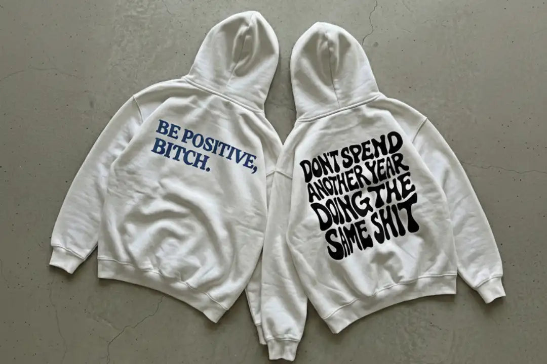 Be Positive Bitch Oversized Hoodie White Female Models - Steel Spirit